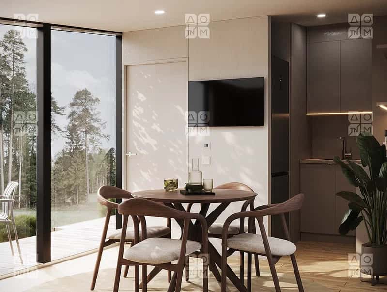Компактный дом общей площадью 32.8 м² с террасой.